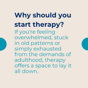 Remember: you are the expert on you. A therapist’s role is to help shine a light on the parts of yourself you may be avoiding or overlooking, the thoughts and feelings quietly weighing on your mind and heart.